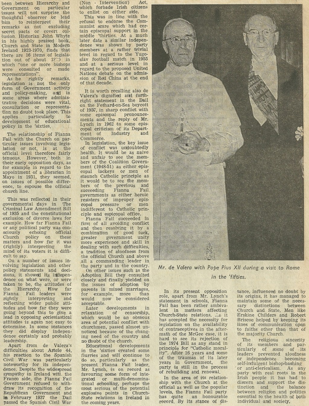 From an Irish Press Supplement to celebrate 50 years of Fianna Fail a piece on “Church State Relations” » churchstate2