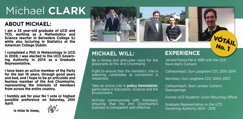 leaflet from Michael Clark -Fianna Fail Committee of 15 election. » mclarkc15b