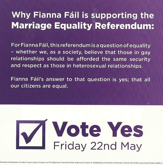 “Vote Yes for Marriage Equality” leaflet from Fianna Fail » ffme2