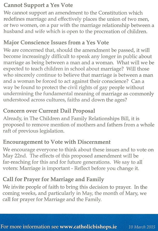 “Marriage is important Reflect before you change it” leaflet from the Catholic Bishops of Ireland » bishops2