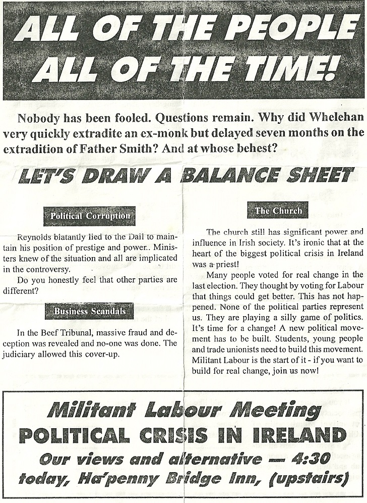 “All Of The People All Of The Time!” 1994 leaflet from Militant Labour » meeting94a