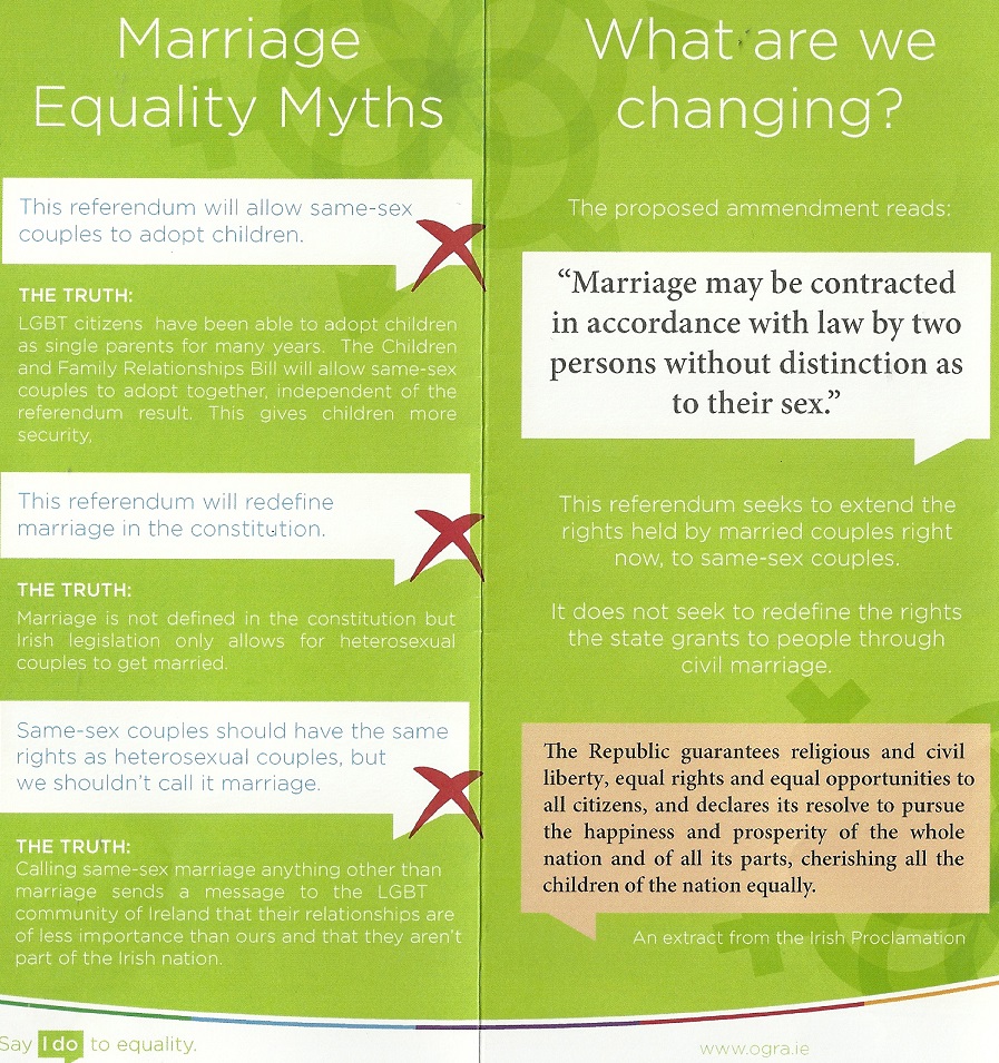 “Say ‘I do’ to equality .. Vote Yes” leaflet from Ogra Fianna Fail » ogramarref5