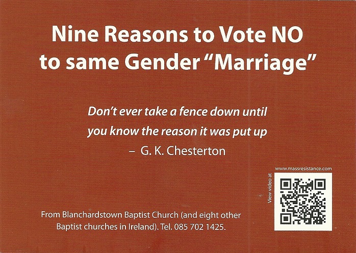 ‘Nine Reasons to Vote NO to same Gender “Marriage” ‘ leaflet from Blanchardstown Baptist Church » 9reasons1