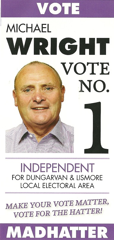“Make Your Vote Matter Vote For The Hatter” leaflet from Michael ‘Madhatter’ Wright -Independent -Dungarvan Lismore -2014 Local Elections » madhatter1