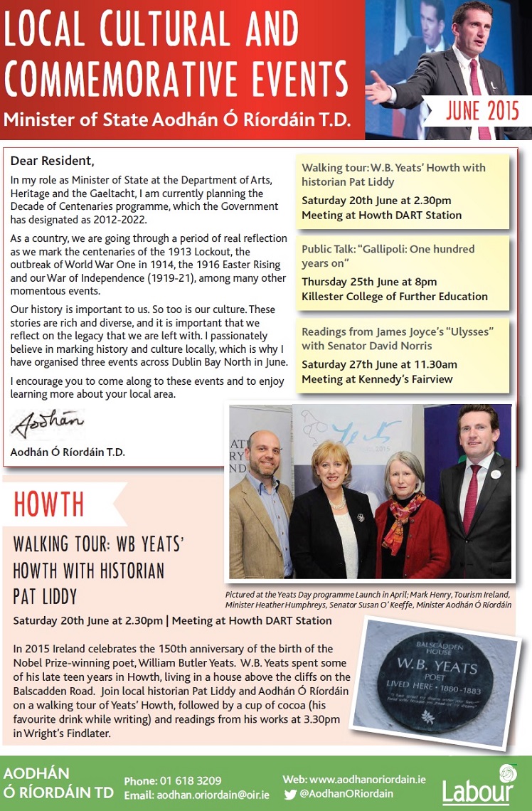 “Local Cultural and Commemorative Events” Leaflet from Aodhán Ó Riordáin -Labour -Dublin Bay North » aorculture1