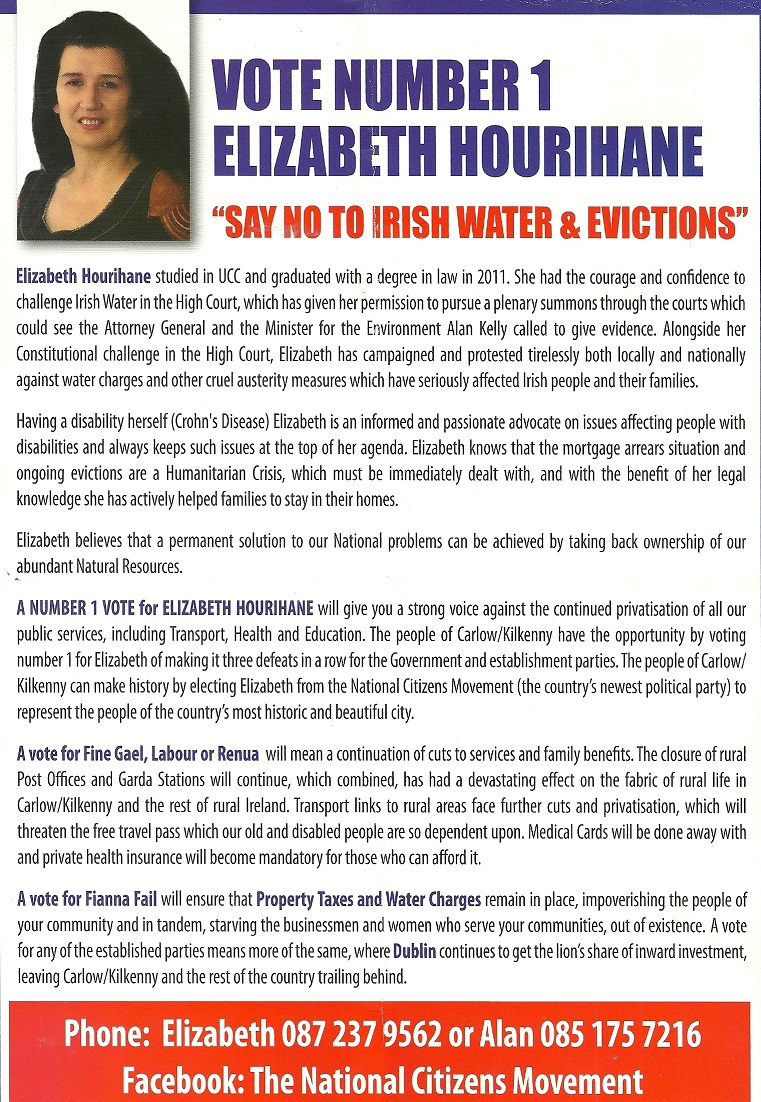 Leaflet from Elizabeth Hourihane -National Citizens Movement – 2015 Carlow KIlkenny By Election » Ehourihane1