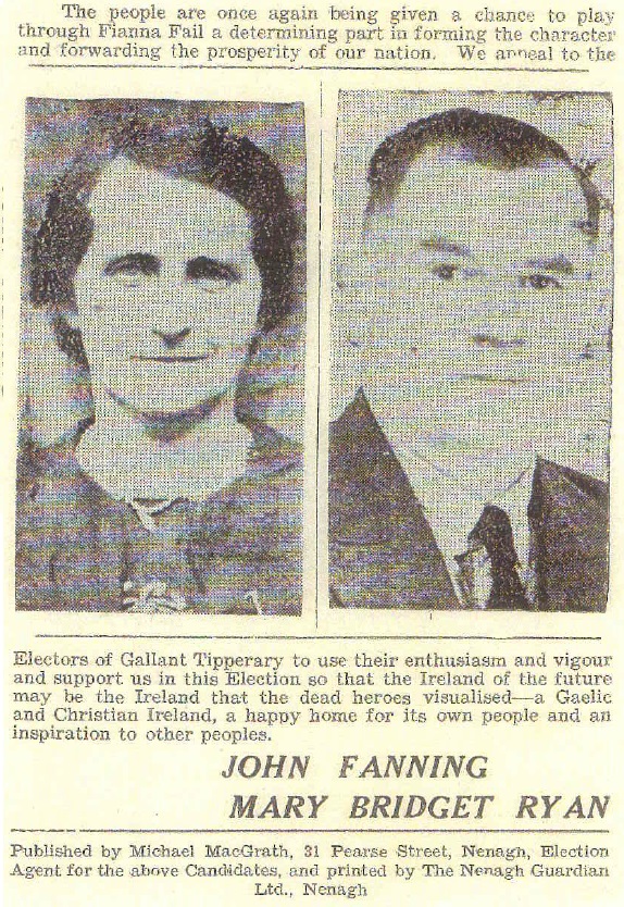 Leaflet from Mary Bridget Ryan and John Fanning – Fianna Fail – Tipperary North -1954 General Election » 54ge1c