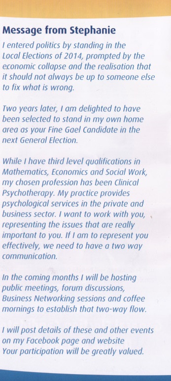 Leaflet from Stephanie Regan – Fine Gael -Dublin Bay North » stephanieregan2a