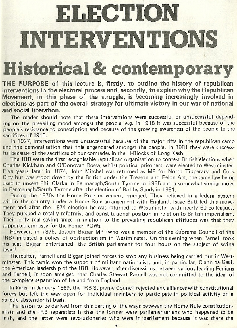 “Election Interventions -Historical and Contemporary” Sinn Fein Education Department pamphlet from the mid 80’s » SFElectionint2