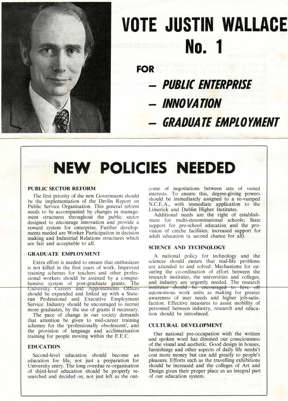 Leaflet from Justin Wallace -Independent – 1977 NUI Seanad Election » JW front