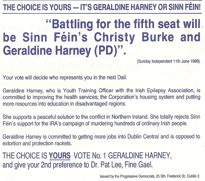Leaflet from Geraldine Harney -Progressive Democrats -Dublin Central -1989 General Election » gharneysf2