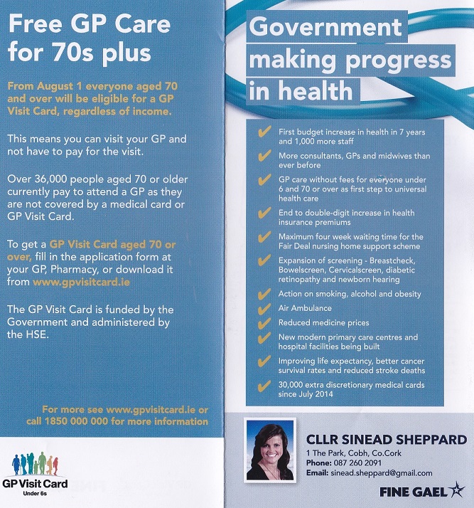 “Guide to GP Care without fees” leaflet from Sinead Sheppard -Fine Gael -Cork East » Sheppard2015b