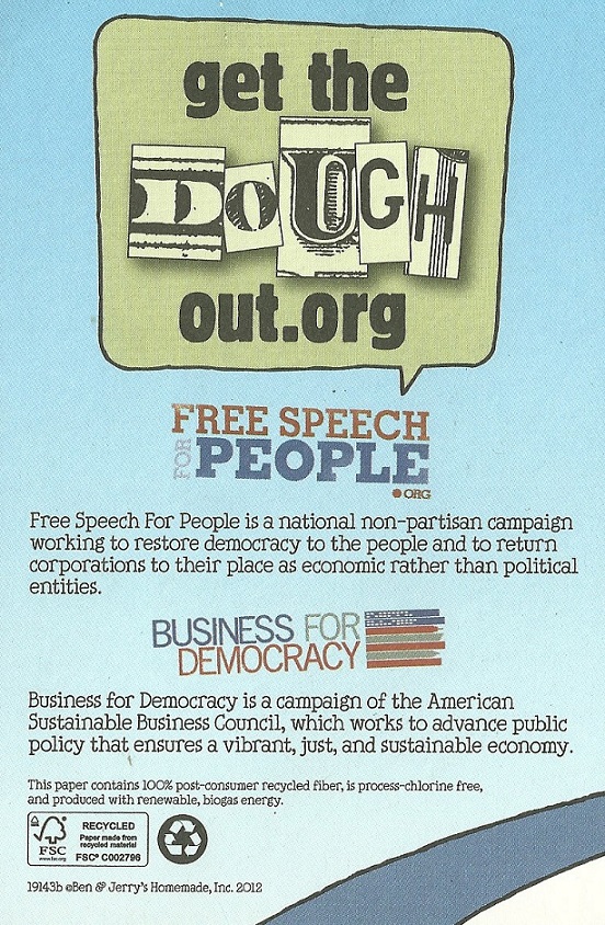 “It’s time to … Get The Dough Out Of Politics!” flyer from Ben & Jerry’s » bnj2