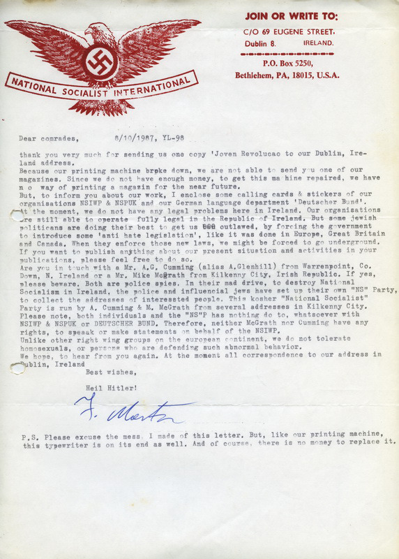 1987 Letter from The National Socialist Irish Workers Party » x1