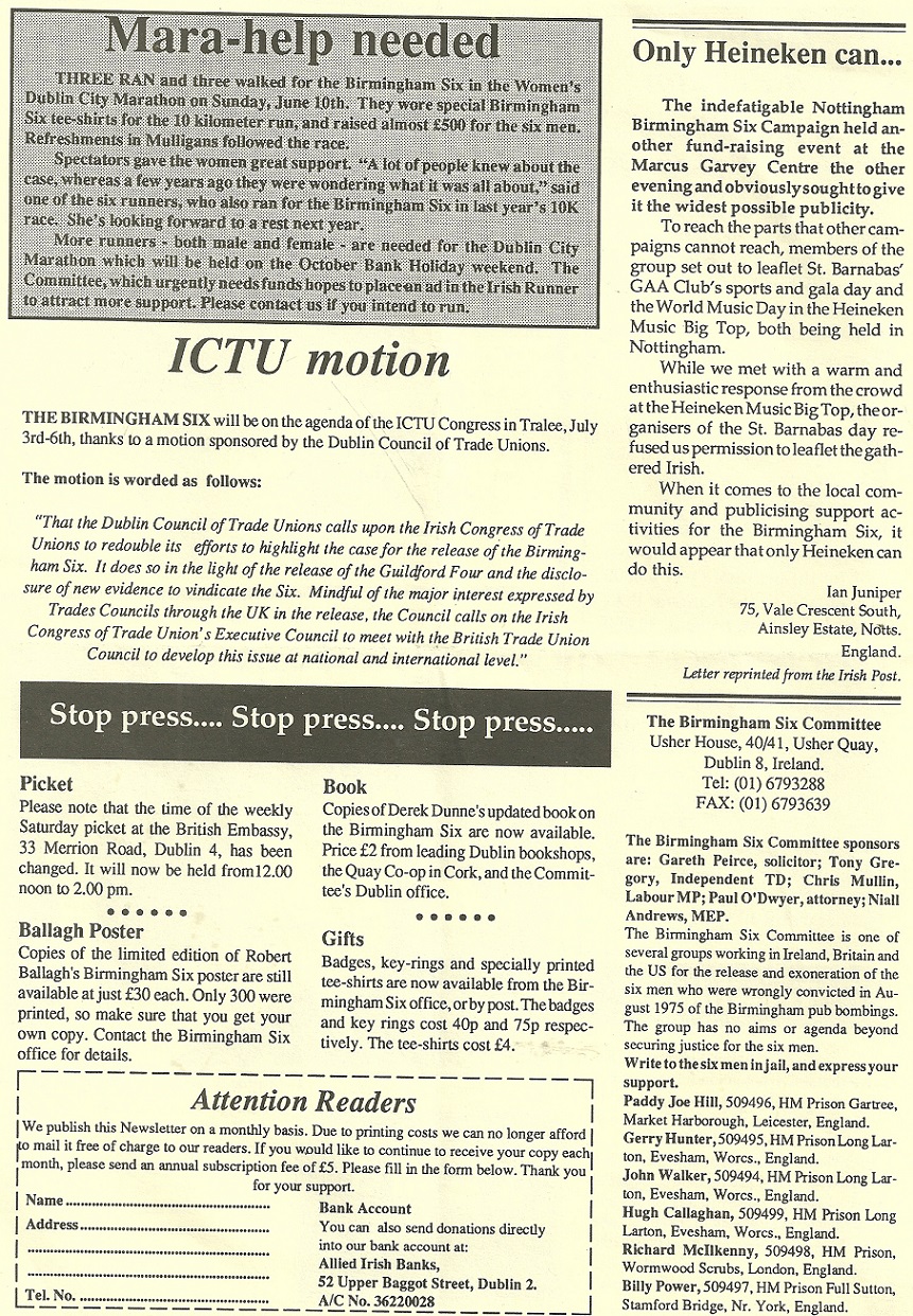 Birmingham Six Committee Newsletter 15th July 1990 » bsix90c