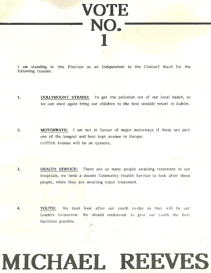 leaflet from Michael Reeves -Independent – Clontarf -1991 Local Elections » mreeves2