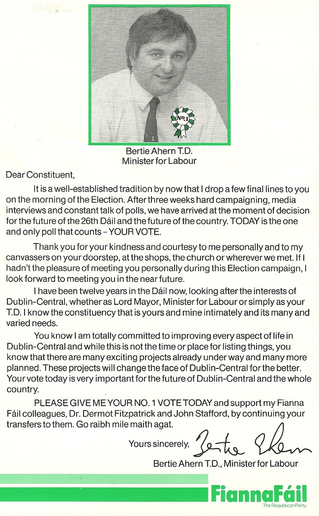 “Well Begun Is Only Half Done” Leaflet from Bertie Ahern -1989 General Election » bertie89b