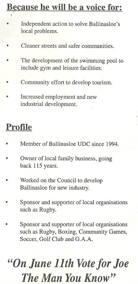 Leaflet from Joe Murray -Ballinasloe UDC – 1999 Local Elections » jmurray2