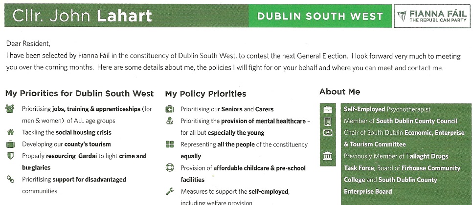 Flyer from John Lahart -Fianna Fail -Dublin South West #vinb » jlhartflyer2