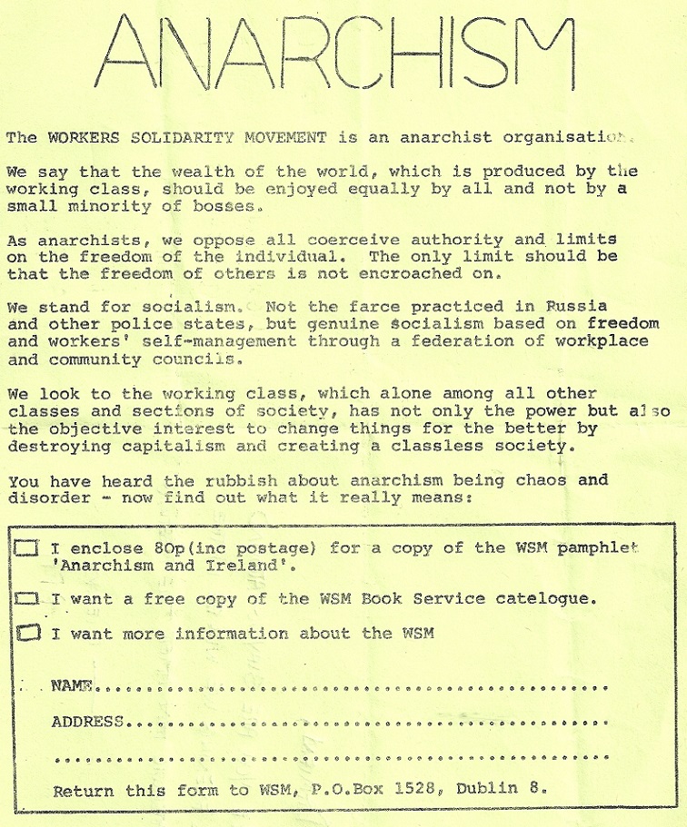 “Anarchism” explanatory leaflet from The Workers Solidarity Movement circa 1986 » Anarchism1986