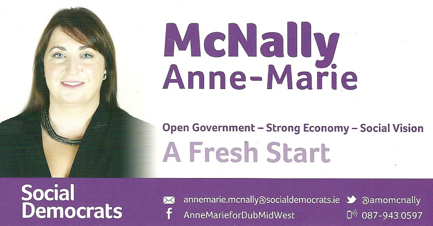 Canvass Card from Anne-Marie McNally -Social Democrats – Dublin Mid West #ge16 » AmMcNally1