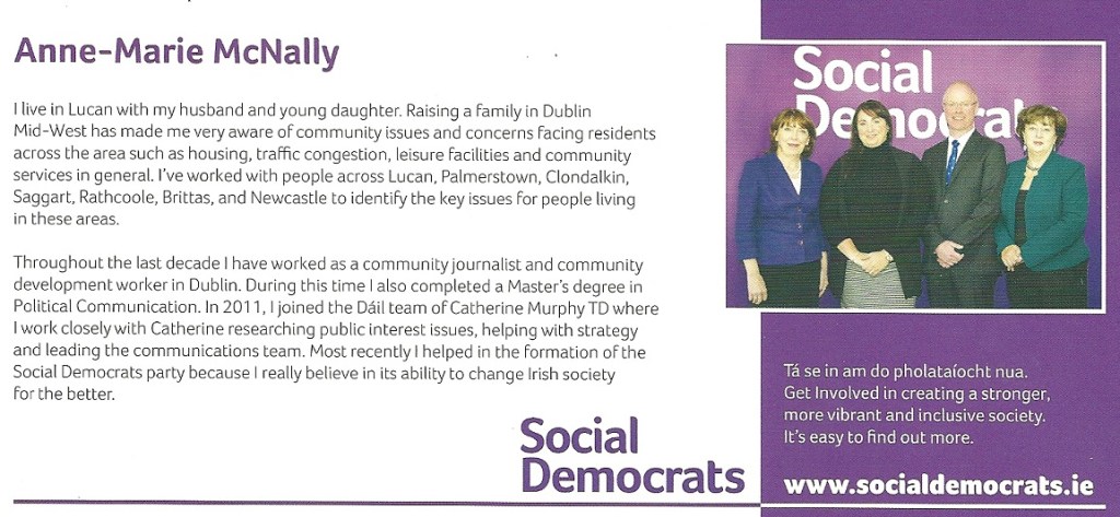 Canvass Card from Anne-Marie McNally -Social Democrats – Dublin Mid West #ge16 » AmMcNally2