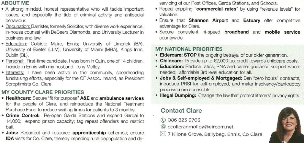 “Clare for Clare” Leaflet from Clare Colleran Molloy -Fianna Fail -Clare #ge16 » ccmolloy2