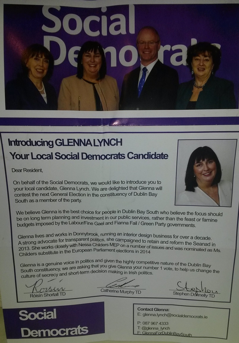 Leaflet from Glenna Lynch -Social Democrats – Dublin Bay South #GE16 January 14, 2016