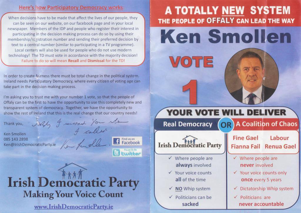 Leaflet from Ken Smollen – Irish Democratic Party – Offaly #ge16 » Ksmollen1