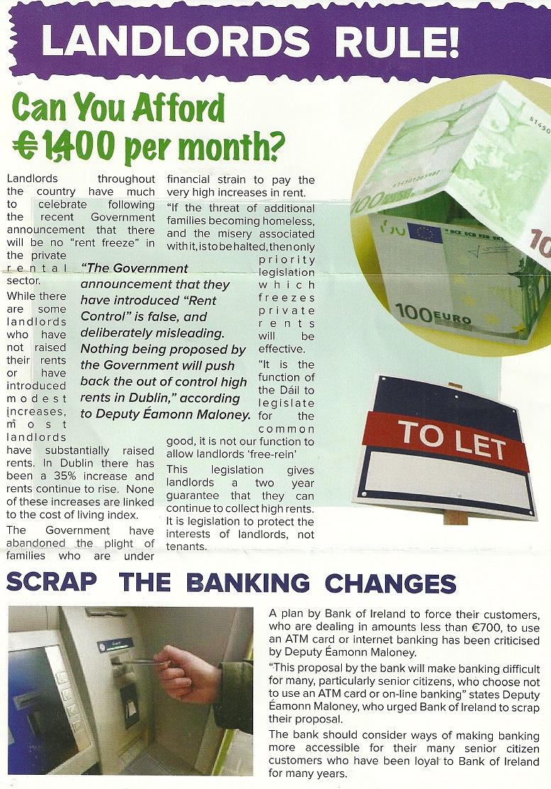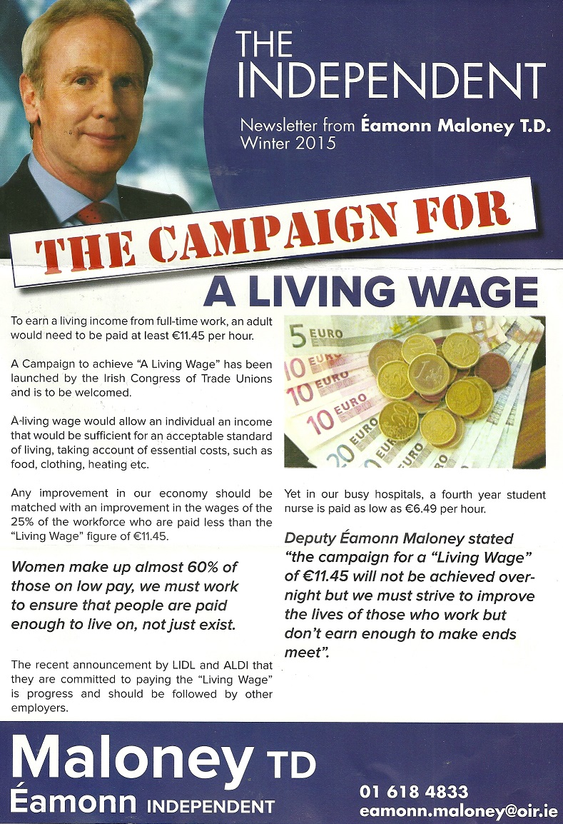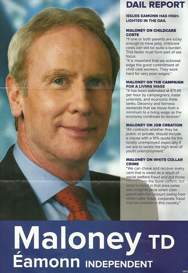 A leaflet from former Labour Party TD Eamonn Maloney who is running as an Independent in Dublin South West.