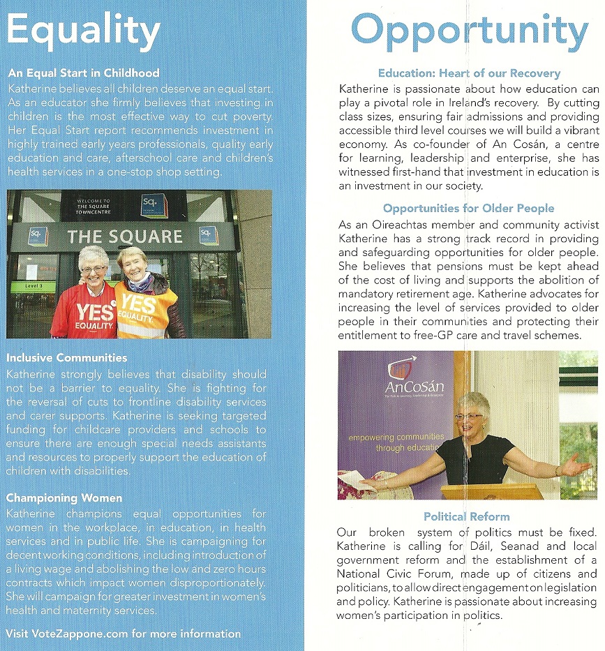 A leaflet from Senator Katherine Zappone, who is running as an Independent in Dublin South West.