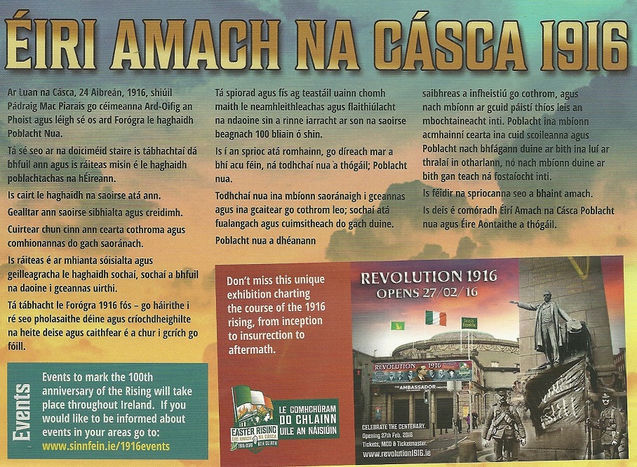 A beatifully illustrated “Easter 1916” leaflet from Sarah Holland who is running alongside Sean Crowe for Sinn Fein in Dublin South West.