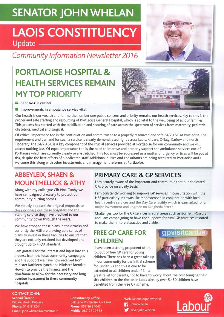 Newsletter from John Whelan -Labour – Laois #ge16 » John Whelan 1