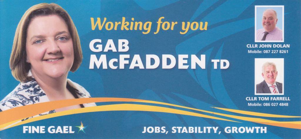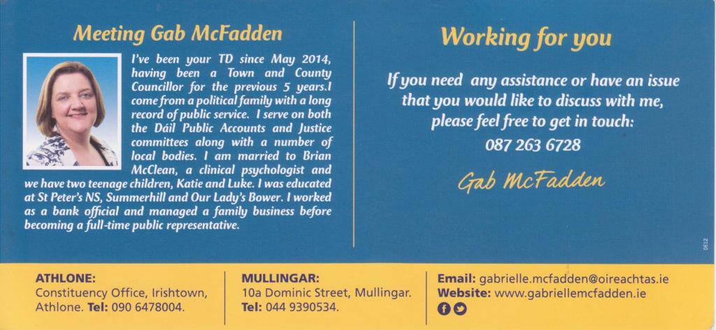 A flyer from Gab McFadden who is running for Fine Gael in Longford Westmeath.