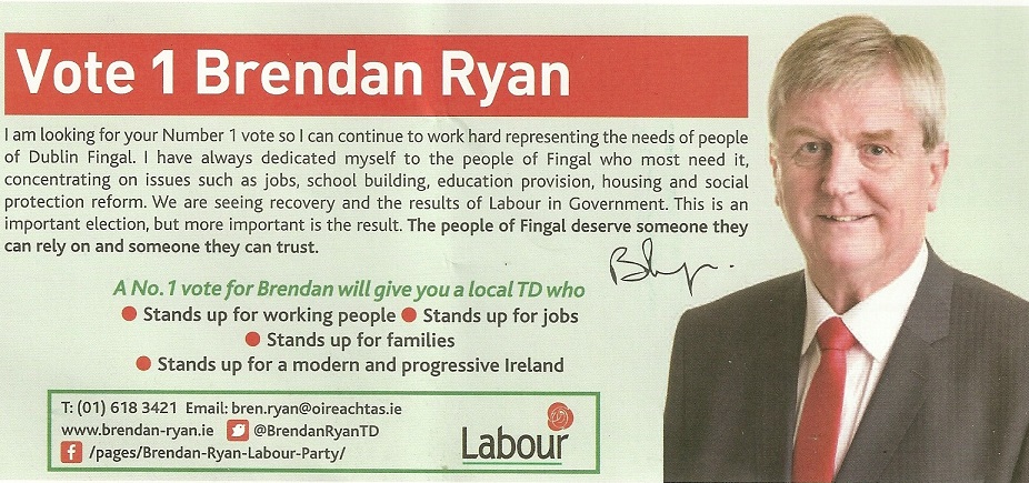 A Litir um Thoghchán from Labour TD for the new Dublin Fingal, Brendan Ryan.