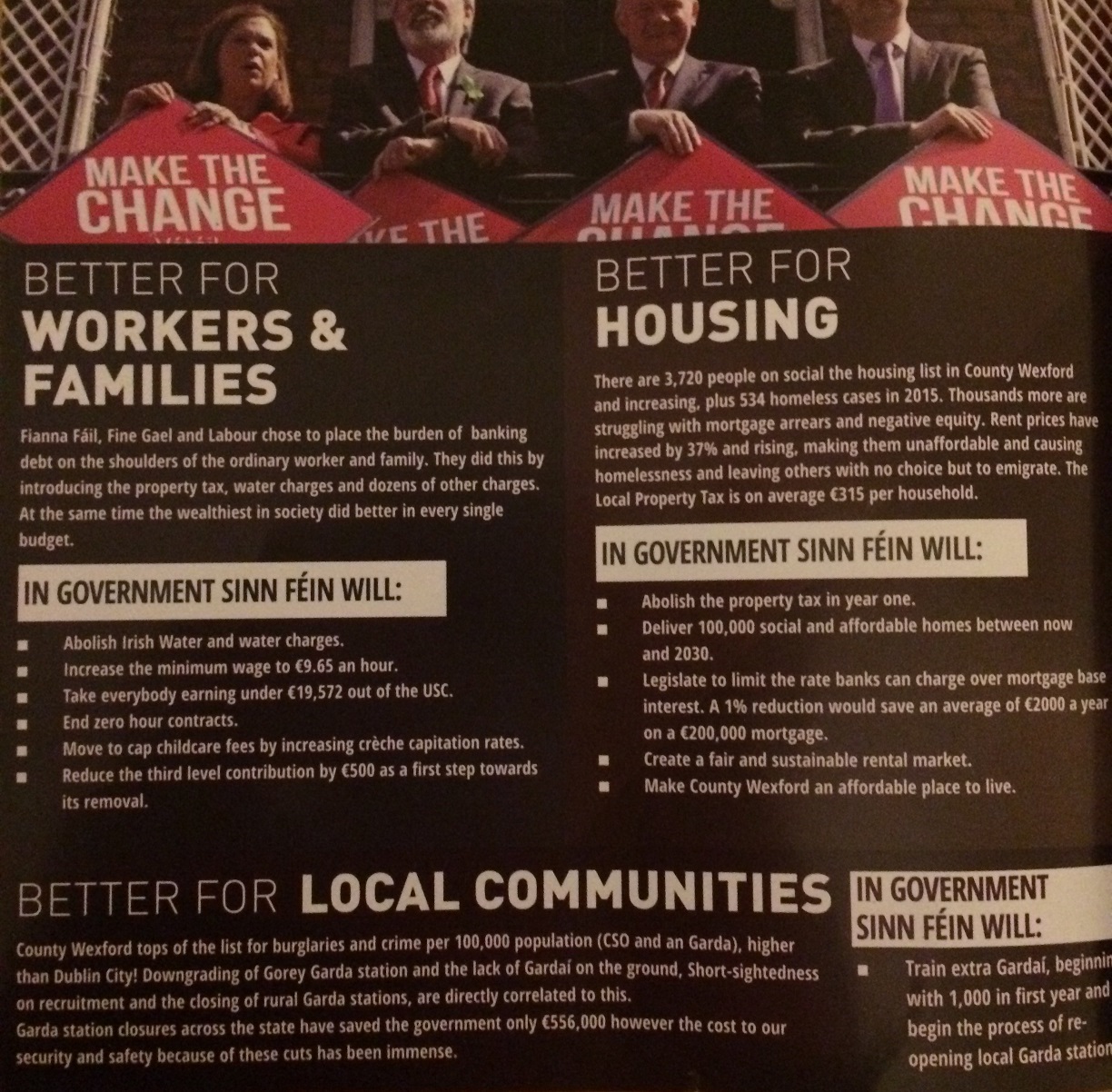 A Leaflet from Johnny Mythen who is running for Sinn Fein in Wexford.