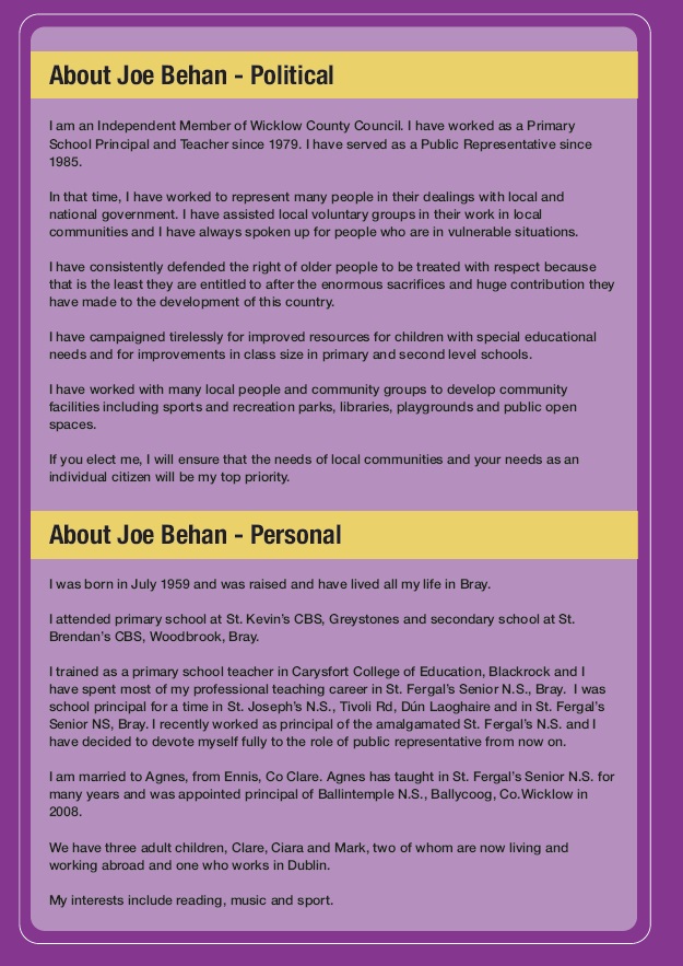 Leaflet from Joe Behan -Independent – Wicklow #ge16 » jbehan2