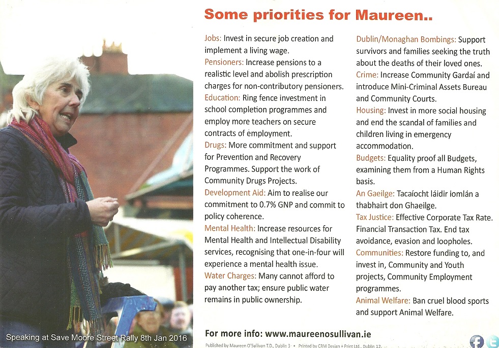 A leaflet from Maureen O’Sullivan who is running as an Independent in Dublin Central.
