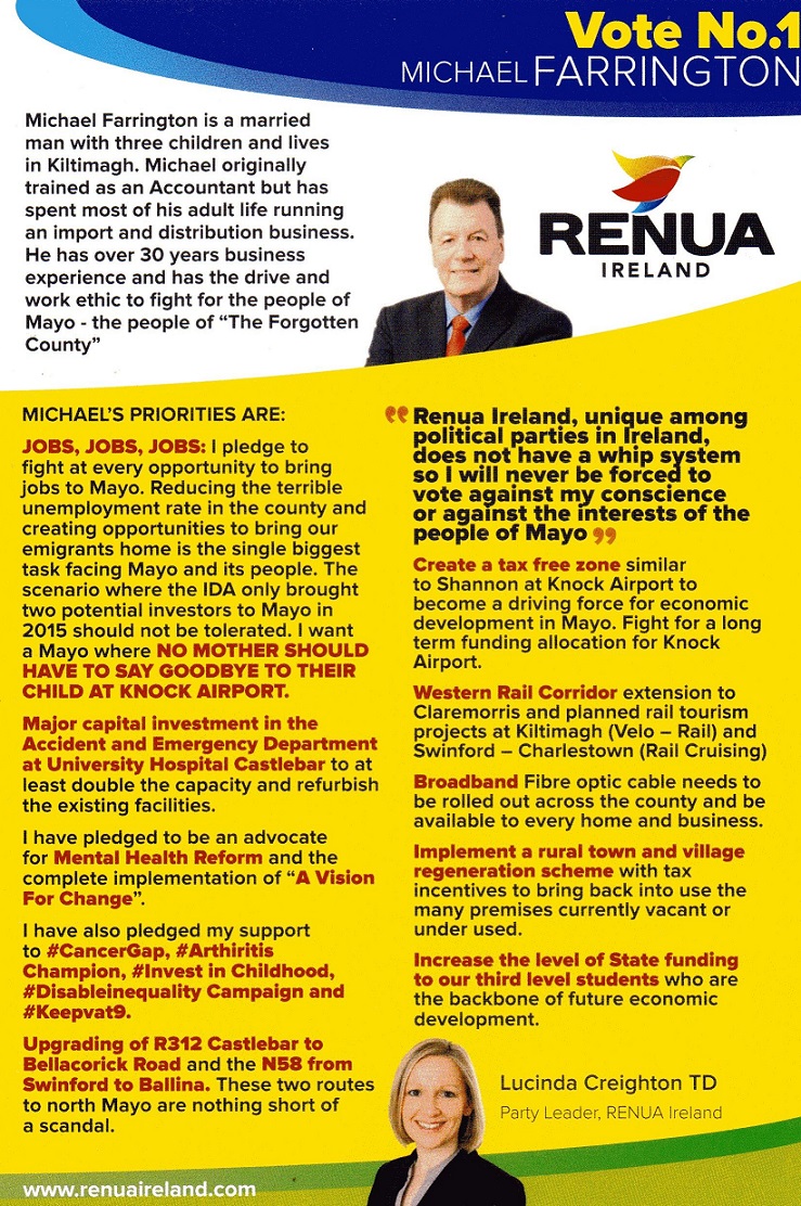 “Keep A TD in East Mayo” Michael Farrington -Renua -Mayo » Michael Farrington-Renua-Mayo_back
