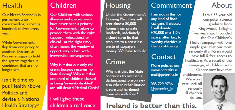 A Litir um Thoghchán and Posters from Peter Fitzpatrick who is running as an Independent in Dublin South West