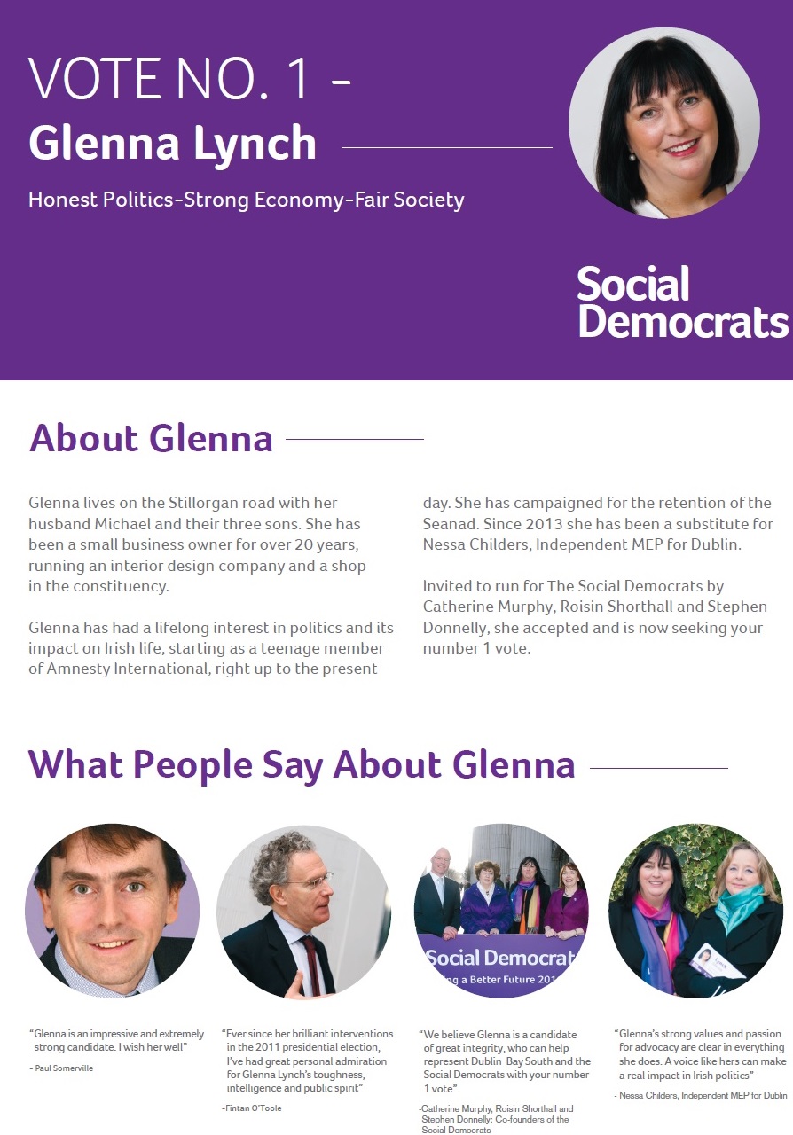 A leaflet from Glenna Lynch who is running for The Social Democrats in Dublin Bay South.