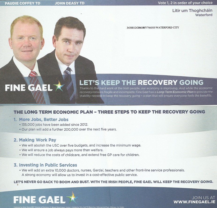 A Litir um Thoghchán from Paudie Coffey and John Deasy who are running for Fine Gael in Waterford.