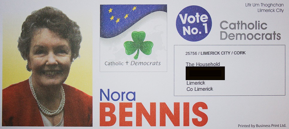 Leaflet from Nora Bennis -Catholic Democrats -Limerick City #ge16 » Nora 001