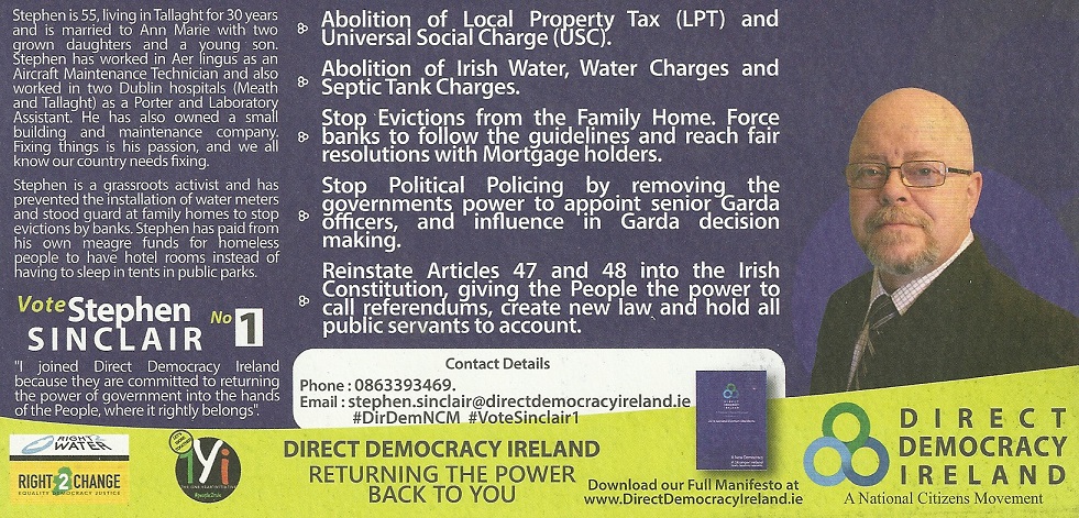 Leaflet from Stephen Sinclair -Direct Democracy Ireland -Dublin South West #ge16 » ssinclair2