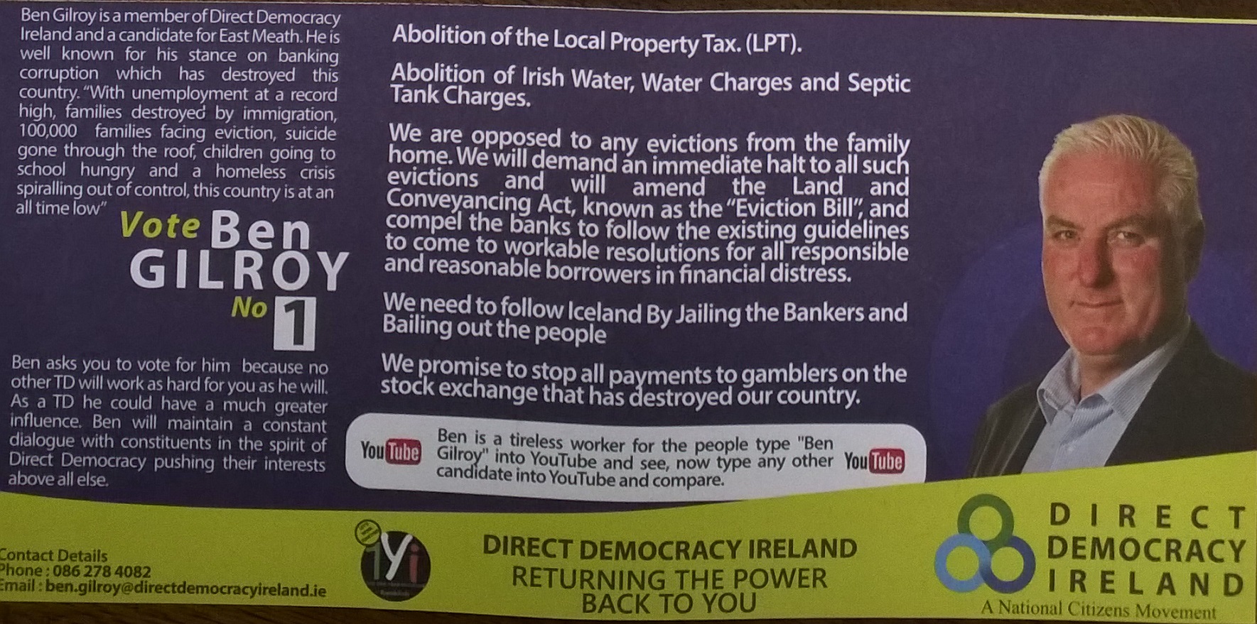 A Litir um Thoghchán from Ben Gilroy who is running for Direct Democracy Ireland in Meath East.