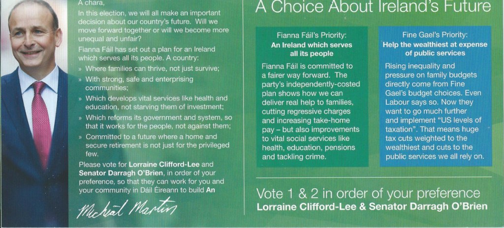 Litir um Thoghchán from Lorraine Clifford Lee, Darragh O’Brien -Fianna Fail -Dublin Fingal #ge16 » FF – Back