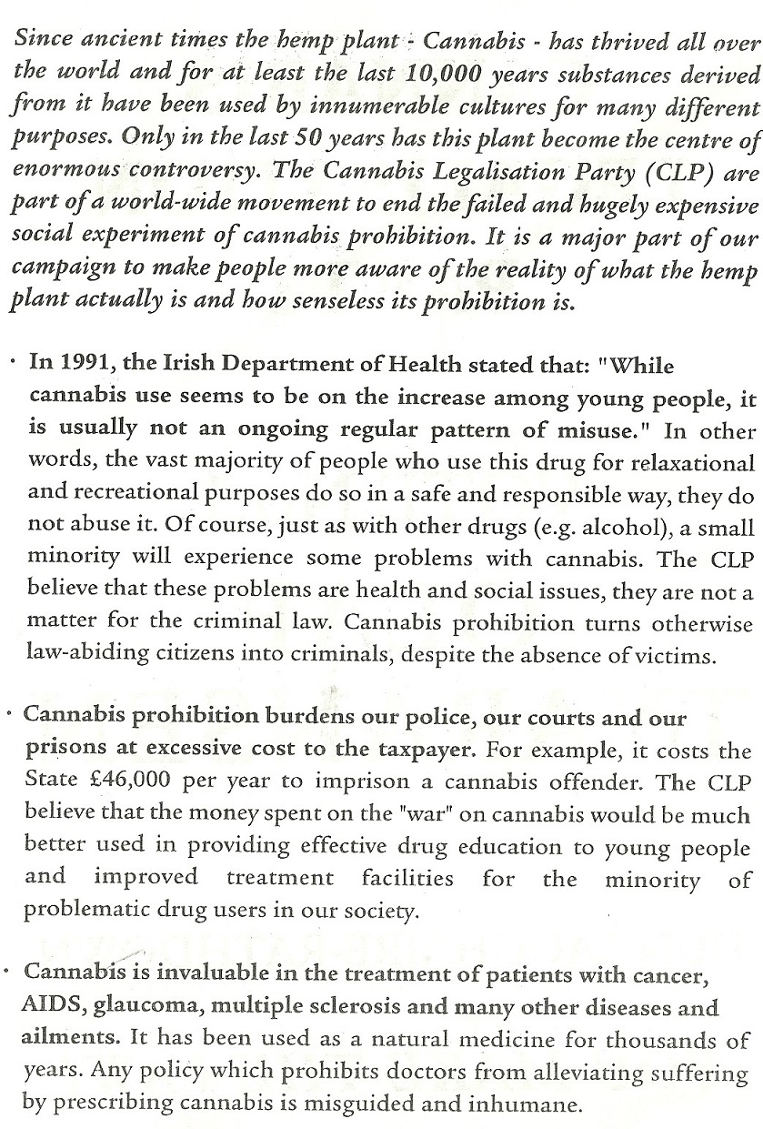 Leaflet from Olaf Tyaransen -Cannabis Legalisation Party -1997 GE – Dun Laoghaire » clp2