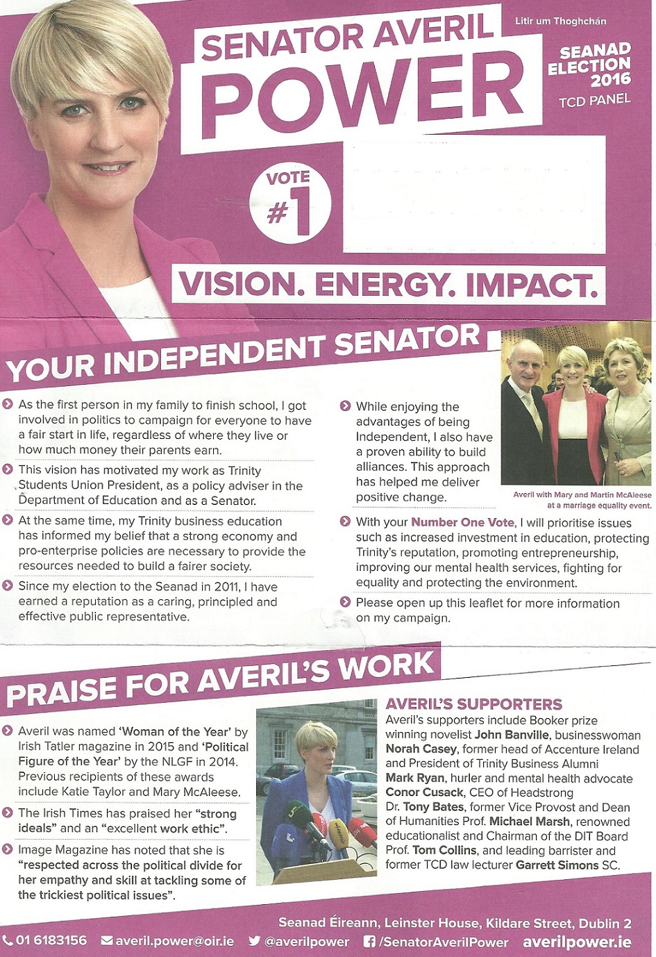 Leaflet from Averil Power – Trinity Seanad #Seanad16 » apower1