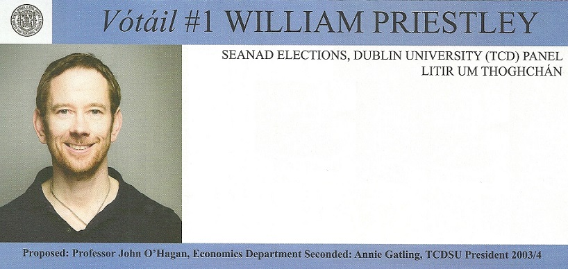 Leaflet from William Priestley – Trinity Seanad #Seanad16 #TCDSeanad » wpriestley1