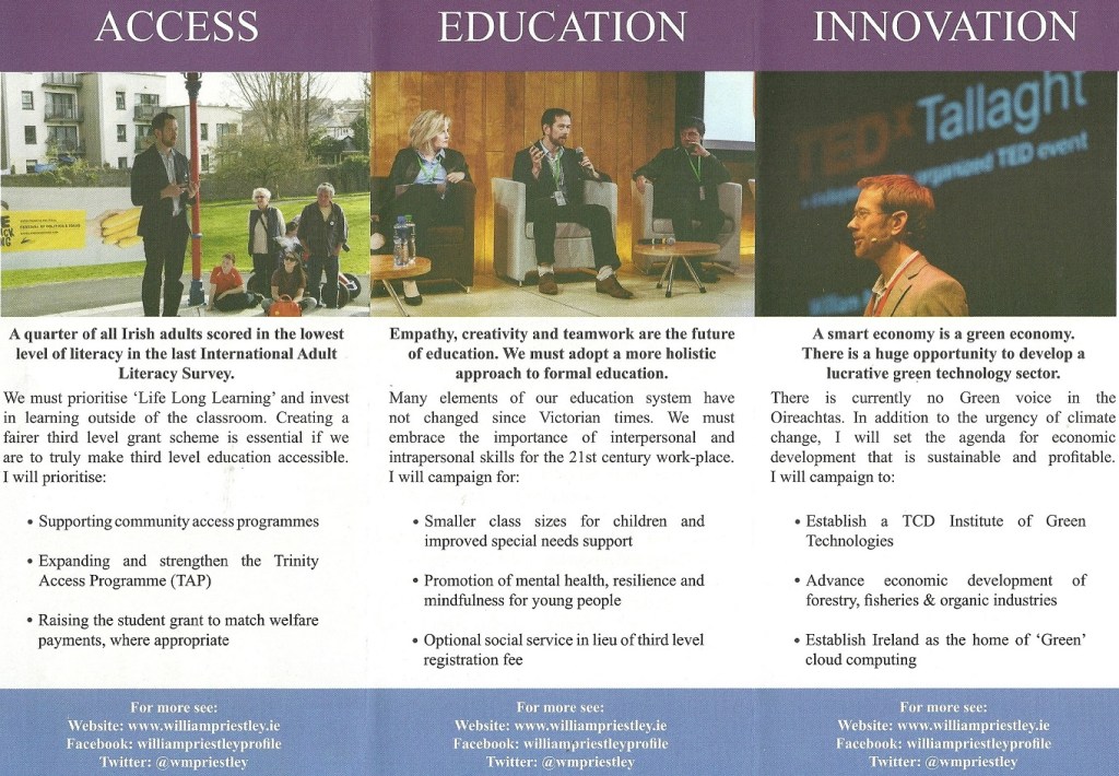 Leaflet from William Priestley – Trinity Seanad #Seanad16 #TCDSeanad » wpriestley3